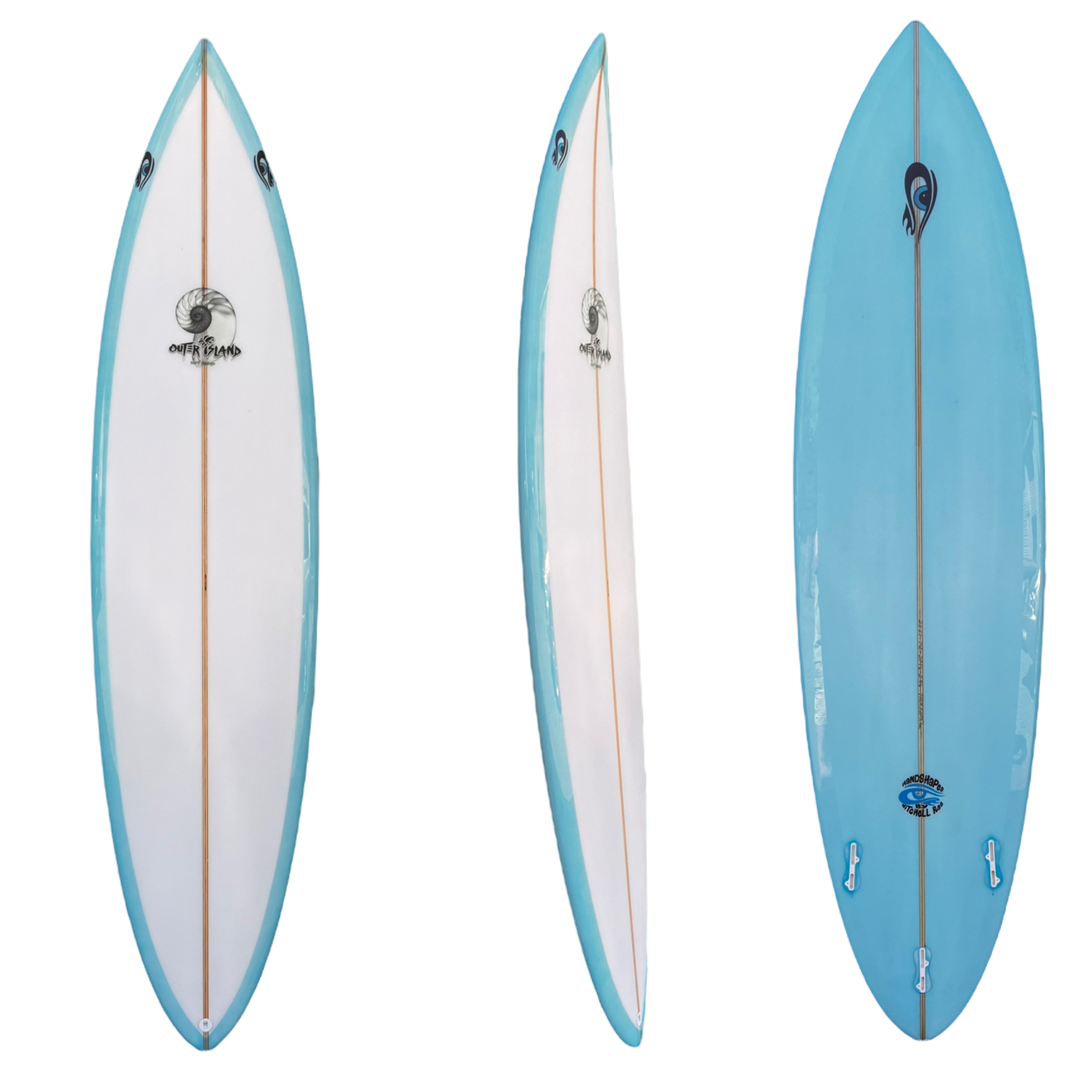 This classic design is wider than a true gun, with slightly increased nose and tail area and a reduced overall rocker, giving the board a broader wave range than a typical gun. The Coral Reefer will see you right gliding in small surf, or charging full throttle as big as you dare. I apply all my proprietary bottom contours, flex theory and fin placement wisdom into these craft to ensure that when that wave comes, you can commit knowing that the board will come around the corner and find the line. These are incredibly refined boards and they are held tightly by the most discerning and experienced of surfers. They will not let you down…