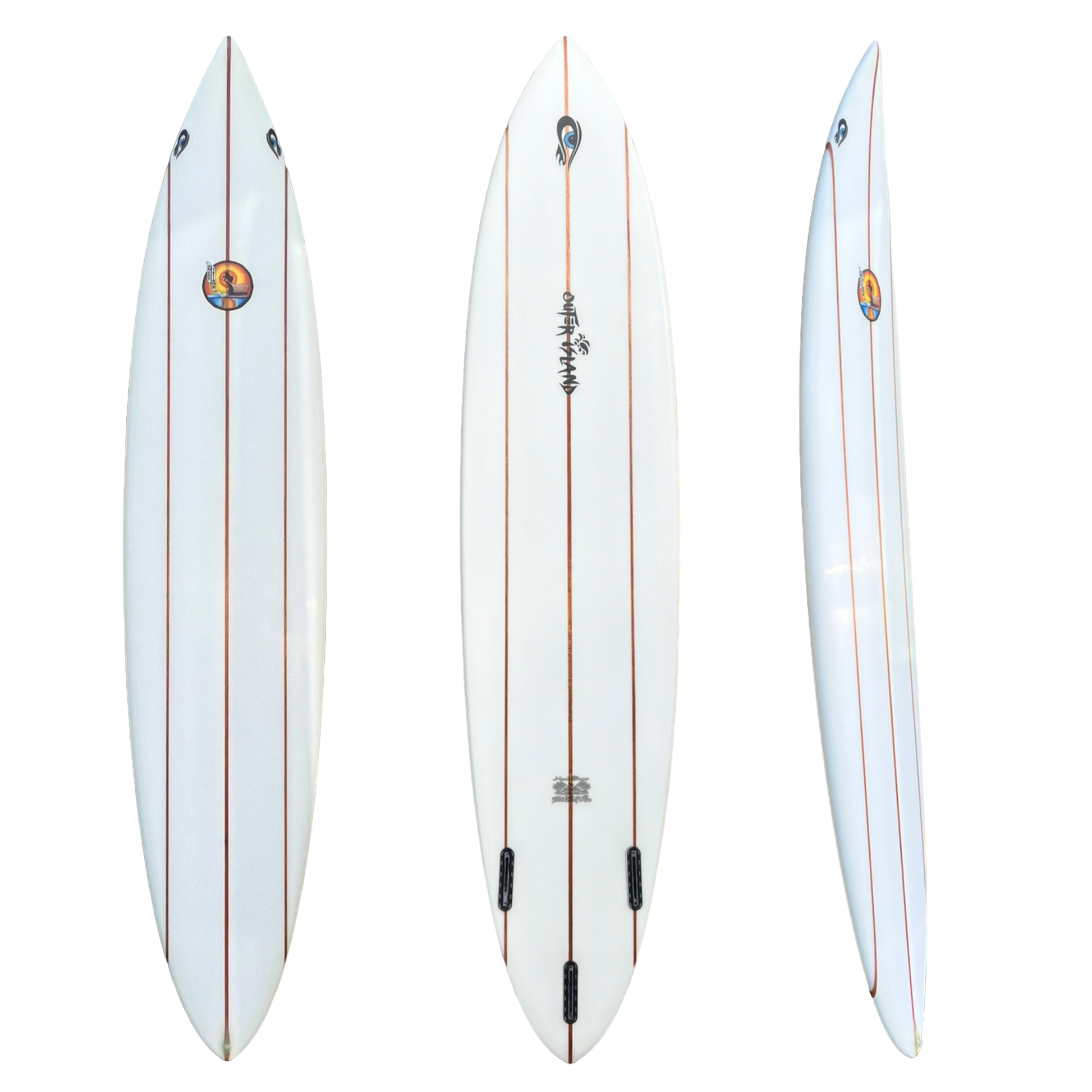 This classic design is wider than a true gun, with slightly increased nose and tail area and a reduced overall rocker, giving the board a broader wave range than a typical gun.