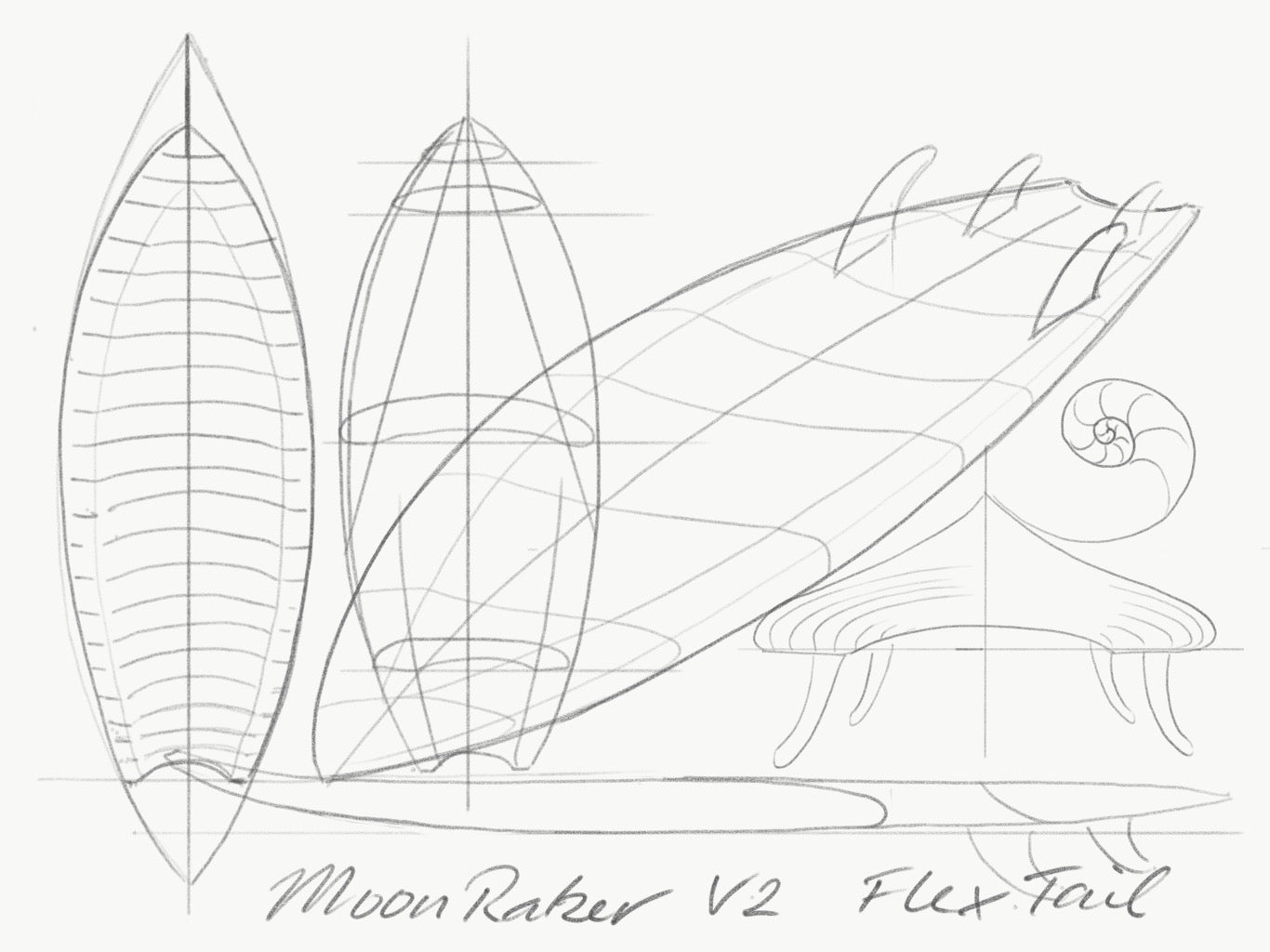 The birth of the MoonRaker design concept came to me driving home from sharing afternoon tea with the Guru of Flex, George Greenough where we talked story and discussed our shared lifetime passion for Flex.