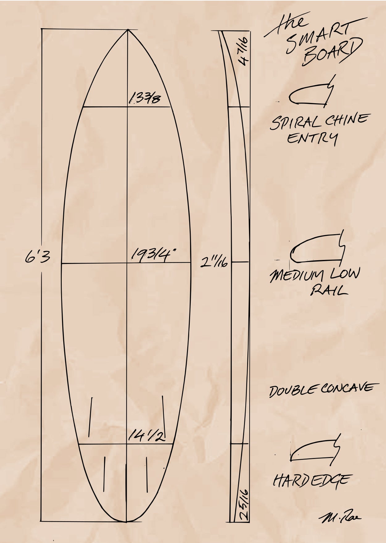 This board has a medium rocker , hidden central foam for ease of paddling and early wave entry. Fast bottom to extract maximum speed and power from small to medium size waves. Recommended as a round tail, this enables smooth rail-to-rail transitions and cutbacks.